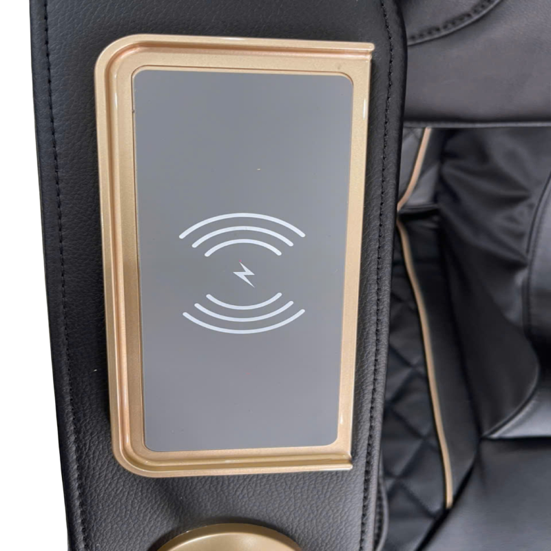 Sạc điện thoại không dây: cho phép bạn đặt điện thoại lên bề mặt sạc trên tay vịn ghế để sạc pin mà không cần dây cáp. Tính năng này rất tiện lợi, giúp bạn giải trí và thư giãn mà không lo điện thoại hết pin.
